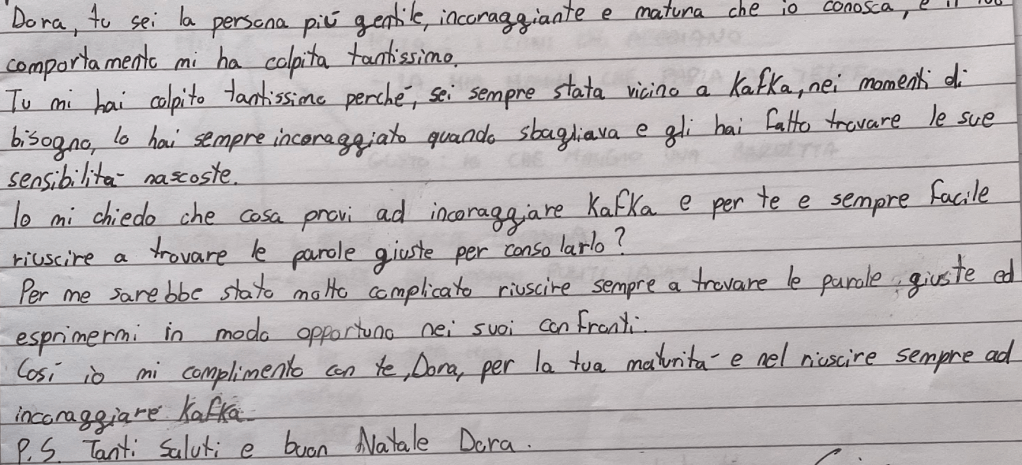 Nel corso dell’ultima settimana di scuola prima delle vacanze natalizie i ragazzi e le ragazze di prima avevano espresso la volontà di rallentare il ritmo, dedicandosi alla lettura individuale ed alla chiusura del percorso incentrato su Kafka e la bambola viaggiatrice. Li vedevo molto attivi sui loro taccuini: annotavano impressioni, provavano ad applicare strategie, rileggevano quanto annotato in precedenza per fare il punto sul proprio percorso di lettori e lettrici.